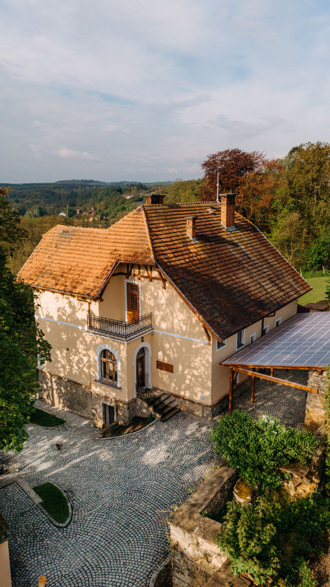 Po 10 letech citlivé rekonstrukce se konečně příští rok otevře brána vily a my bychom byli rádi, kdybyste si právě zde řekli své ano. Vila je obohacena velkou zahradou, takže rázem zapomenete, že jste v centru města. Kromě bohaté zeleně se vila pyšní krásným výhledem na město. Odpočinout si od stresu a zrelaxovat se můžete ve vířivce, kterou si můžete užívat po celý víkend. S parkováním si lámat hlavu nemusíte, je zde dostatek parkovacích míst na pozemku a na veřejném parkovišti.